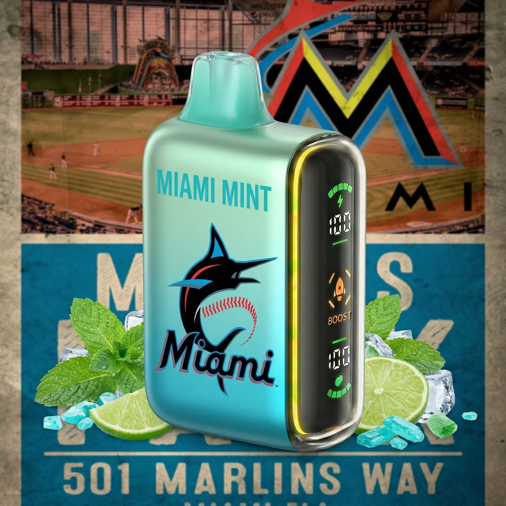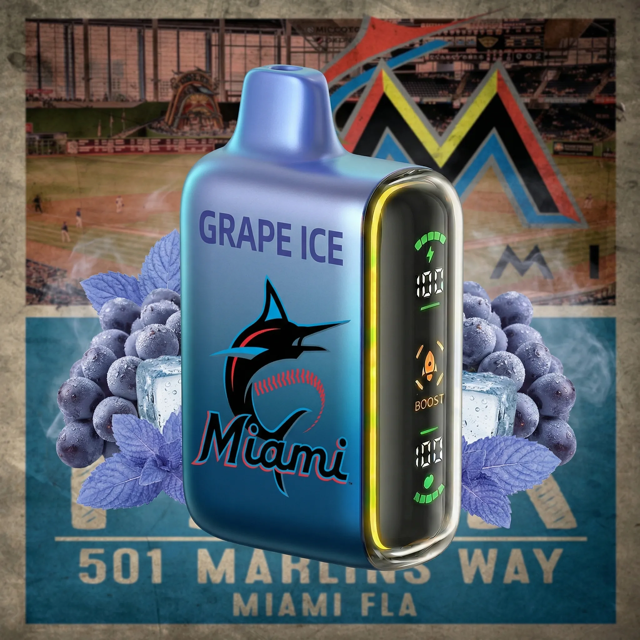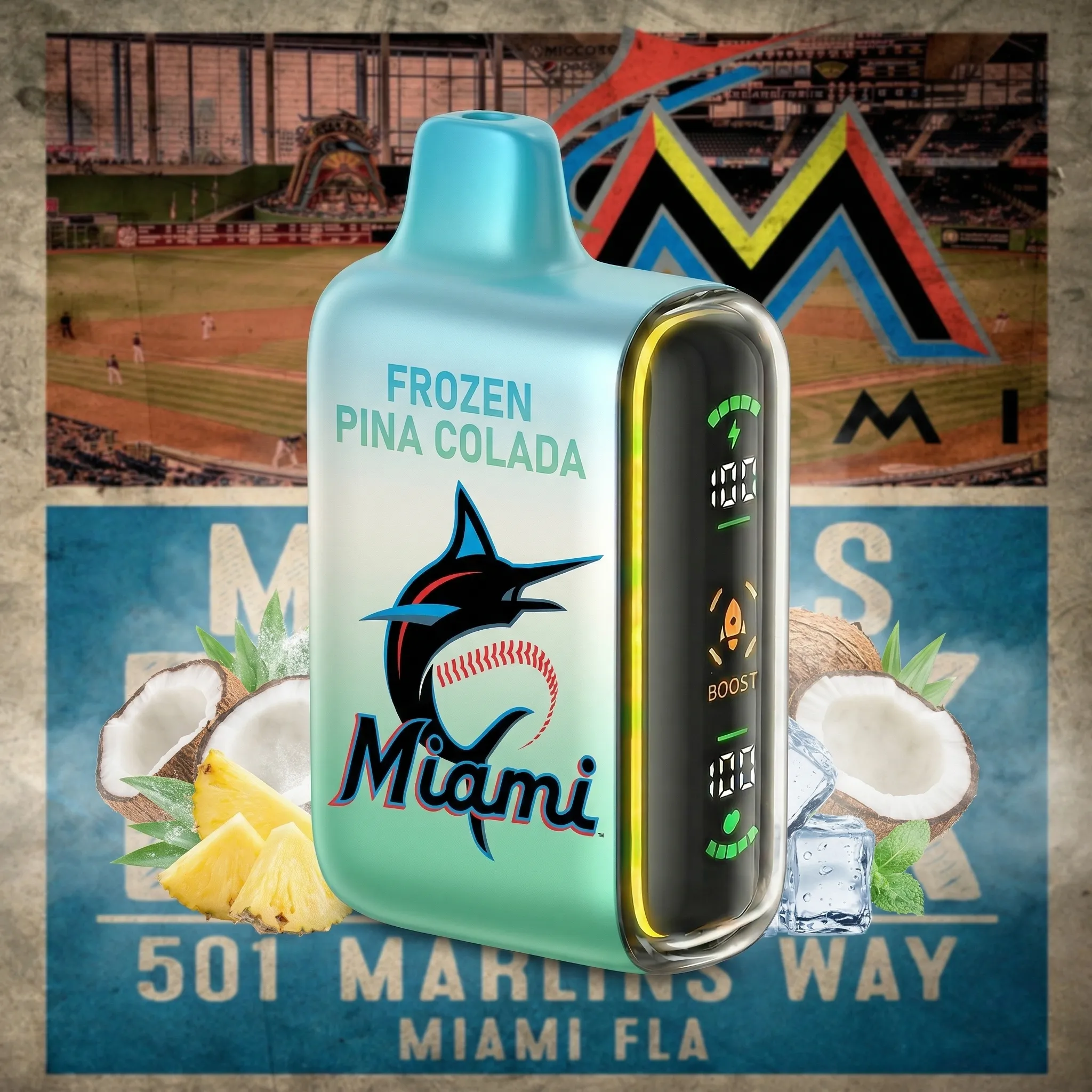 Miami Marlins - ?InkSkin Pulse 15000 Puffs new - 10+ Flavour Choices ???